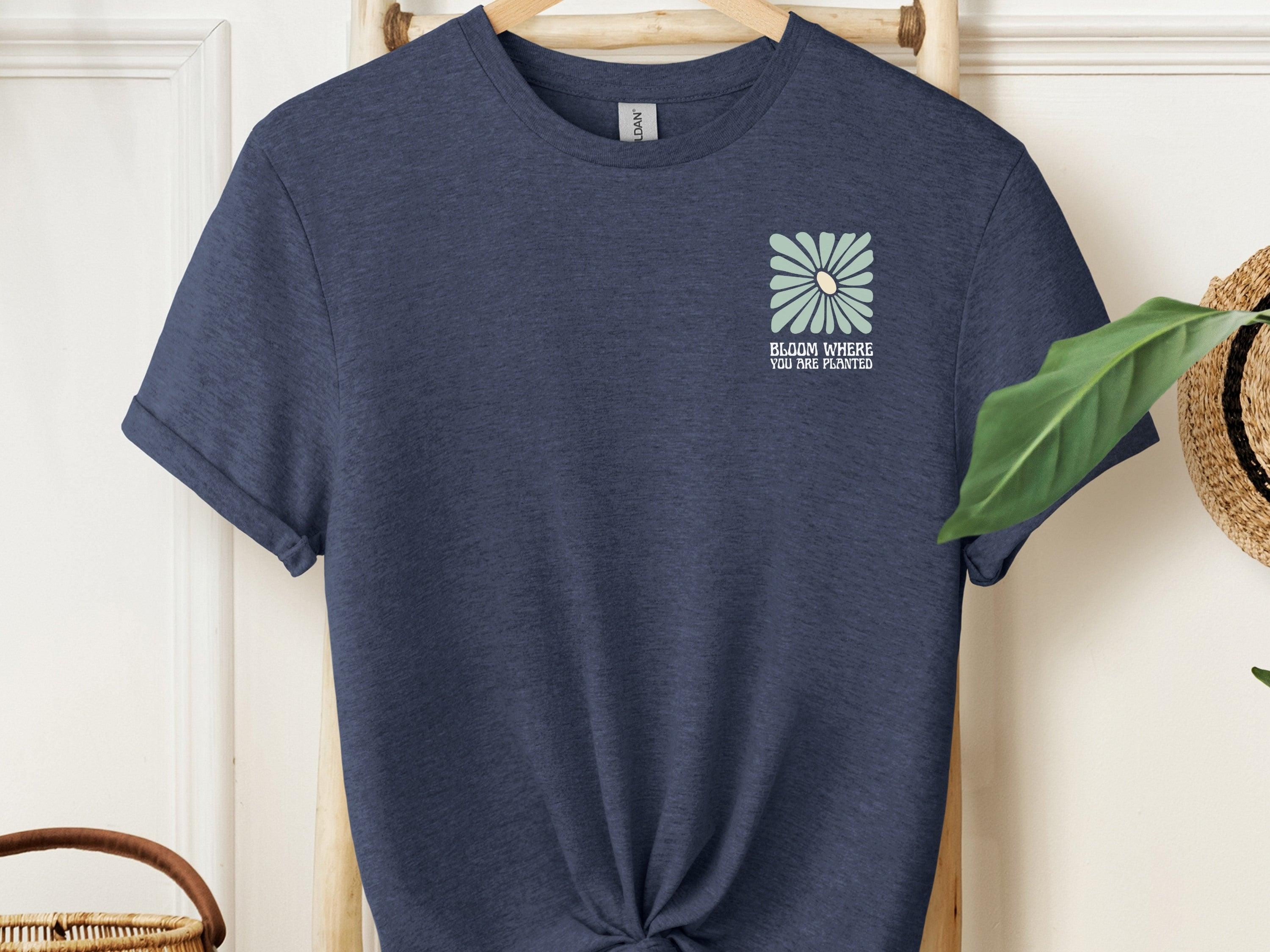 Bloom Where You Are Planted Tee w/ Back Print - color variant: Heather Navy