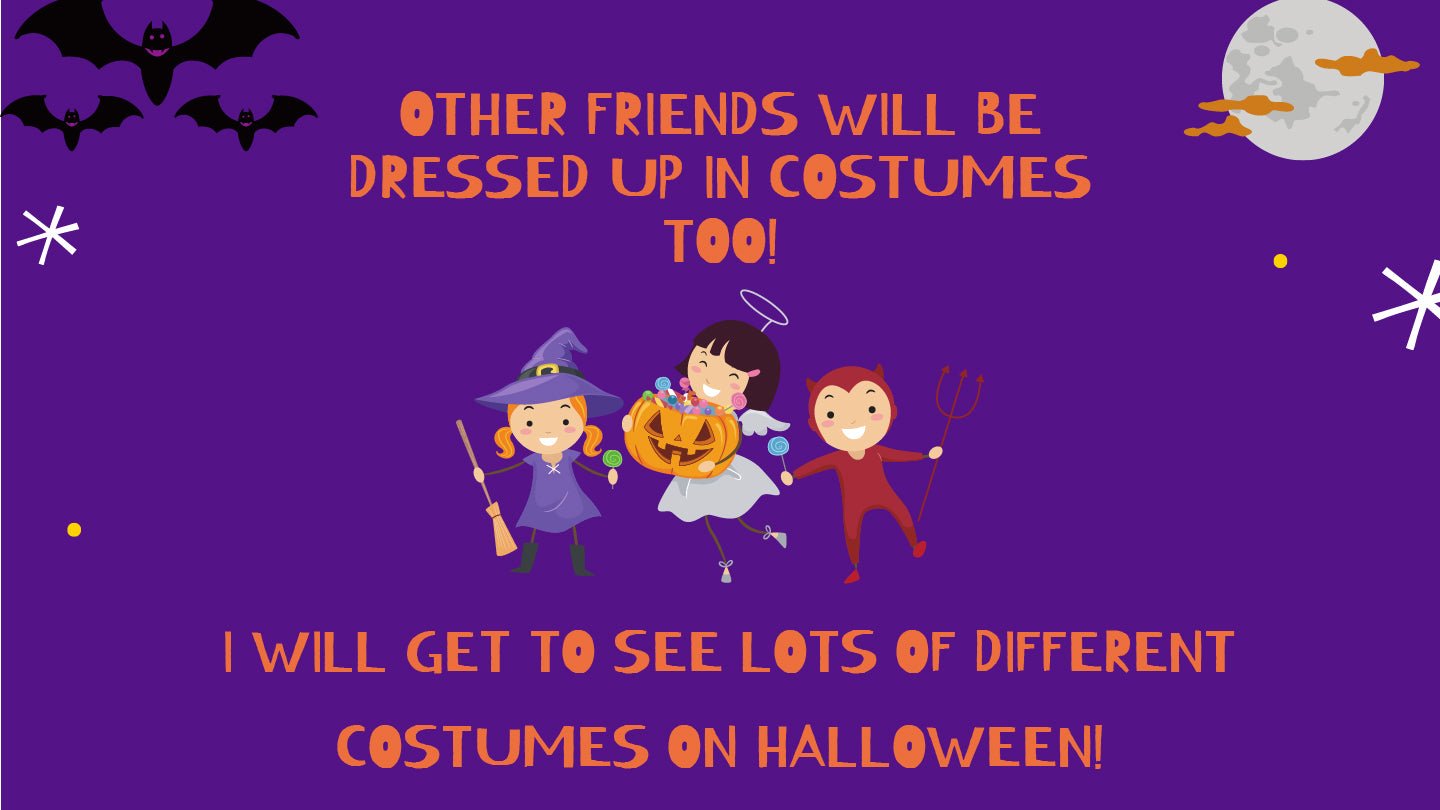 • Promotes Predictability: Clearly outlines the step-by-step process of trick-or-treating (getting dressed, knocking, saying the phrase, getting candy).