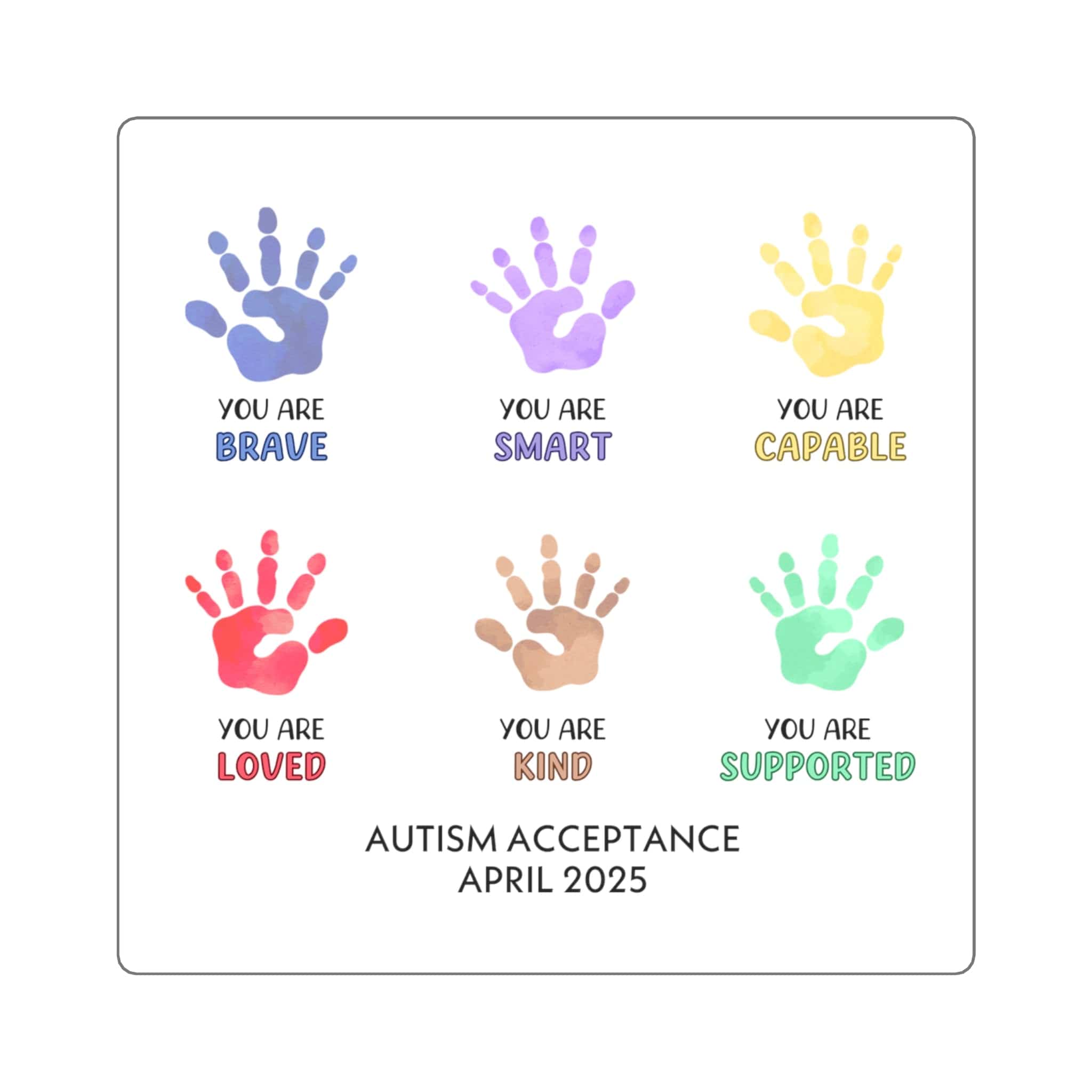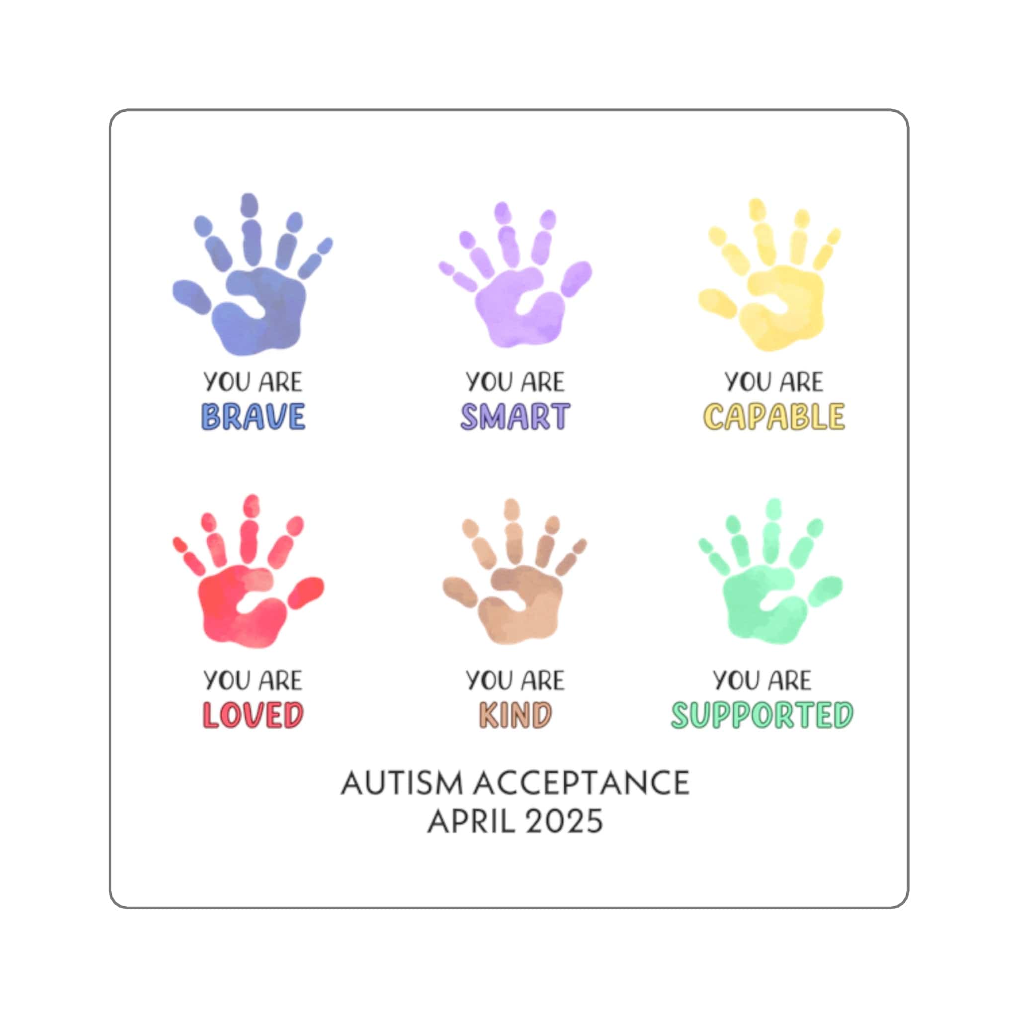 Mark World Autism Acceptance Day on April 2, 2025, with this vibrant and symbolic sticker! Featuring heartwarming affirmations and painted handprints. Whether you’re an advocate, ally, or part of the neurodivergent community, this sticker is a meaningful way to spread awareness and promote inclusion.